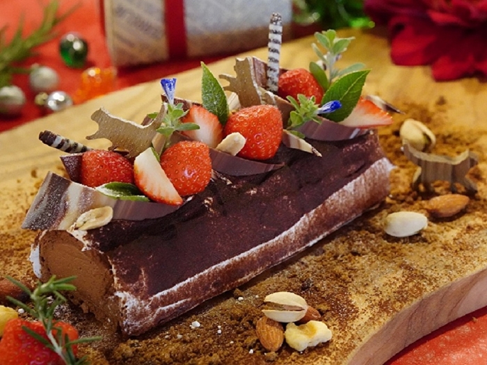 ビュッフェレストランでは12月23日~25日の3日間、夕食ビュッフェメニューの1つとして、ヤマネコ型の砂糖菓子がのっているクリスマスケーキの提供を行います。