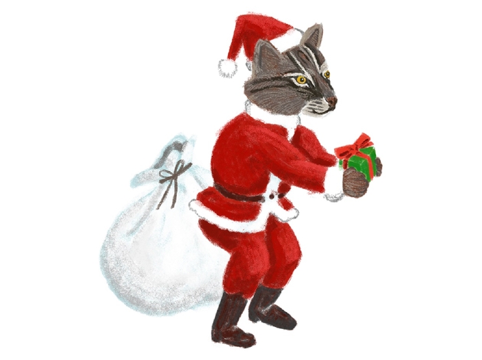 西表島ホテルでは、20:00なると「ヤマネコサンタ」がロビーに登場します。ヤマネコサンタが持っている袋には、ヤマネコクッキーや肉球チョコなどヤマネコをモチーフにしたお菓子が入っており、お子様にプレゼントします。大人の方へはスパークリングワインを、ヤマネコの足跡がプリントされたグラスで振る舞いクリスマス気分を盛り上げます。