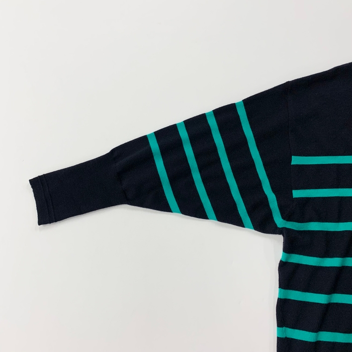 家の中でも外出時でも気軽に着られる、普段使いしやすいニットプルオーバーを作りました。シンプルかつリラックスできるサイズ感で着やすさもありながら、ブライトカラーのボーダーがアクセントになり、着るだけでスタイリングがパッと明るくなるアイテムです。