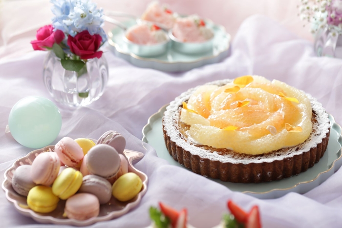 ストリングスホテル名古屋の名物スイーツブッフェ、2022年7月~8月の期間は“パステルカラー”をテーマに、ゆめかわスイーツが勢ぞろい。5色から選べる特製ウェルカムドリンクから始まり、『ろりぽっぷぜりー・いちごむーす・まかろん』など、すべてのメニューをひらがな表記に、ブルー、グリーン、ピンク、イエロー、パープル、オレンジなどの彩り豊かな絶品スイーツをご用意いたしました。また、シェフ特製彩り鮮やかな冷製スープ、ポップコーンなどの軽食もご用意しているので、甘いものとしょっぱいものを交互にお楽しみいただけます。