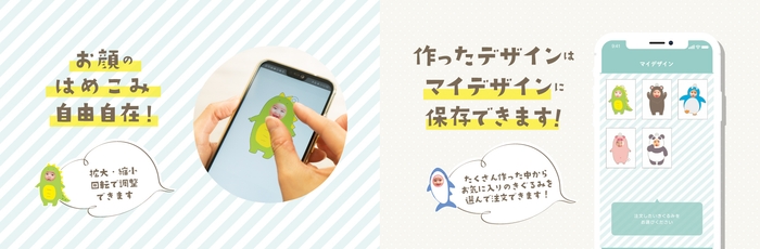 スマホに入っているお子さまの顔写真をきぐるみにはめ込んでみましょう!