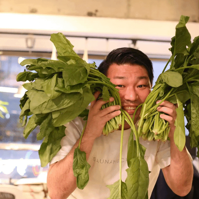 社長曰く、「成長しすぎて市場で販売できないほうれん草をどうにか破棄せずに消費したい」という記事を見つけてしまい、農家さんを応援したい!となり購入に至ったとの事です。