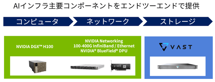 マクニカは、NVIDIA社のアクセラレーテッド コンピューティングとソフトウェアに、世界中のパートナー企業による最先端技術を柔軟に組み合わせたAIソリューションを提供しています。このたび、VAST Data社との販売パートナー契約締結により、AIワークロードに最適化されたデータプラットフォーム製品を取り揃えることで、AIインフラの主要コンポーネントであるコンピュータからネットワーク、ストレージまでエンドツーエンドで提供が可能となりました。