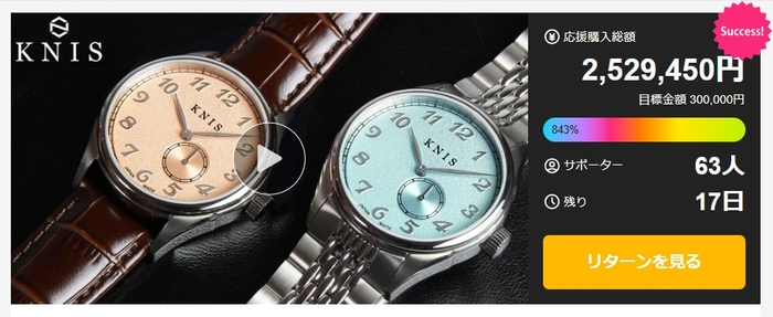 京都から生まれた機械式腕時計「KNIS/ニス」、クラウドファンディングがマクアケで目標の800%達成!