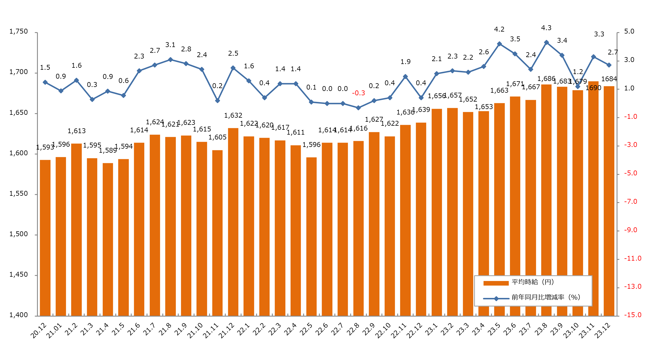 過去10年間で第2位の高時給。16か月連続で前年同月比プラスを記録。