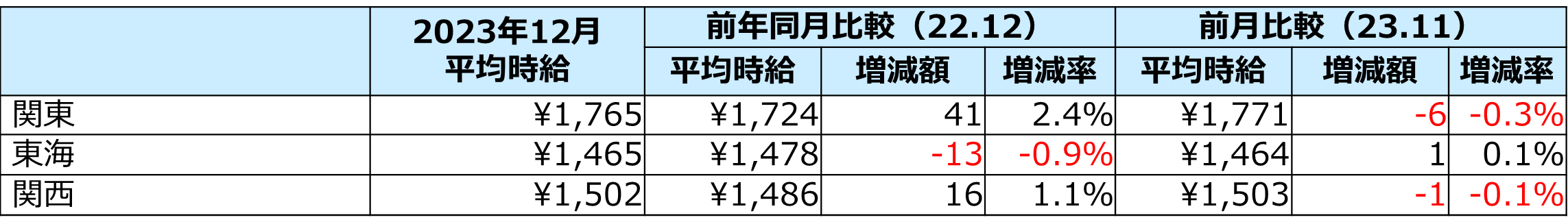 ■12月度のエリア別平均時給は、【関東】【関西】で前年同月比プラスを記録。