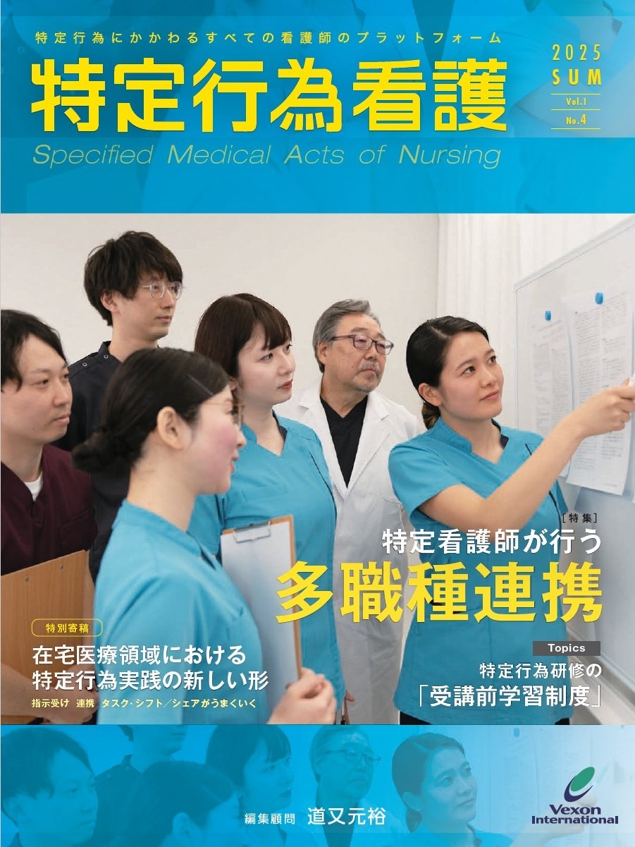 医療事業者向け研修コンテンツを提供するヴェクソンインターナショナル株式会社(本社:東京都千代田区 代表取締役:兼久隆史)は、専門誌『特定行為看護』Vol.1 No.4を2025年6月20日(金)に発売いたしました。