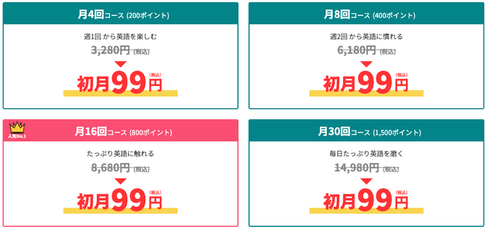 3.各コースに初月99円の料金表示がございますので、ご希望のプランをご選択の上ご購入ください。