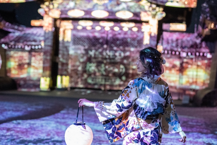 和楽器が奏でる優美な音楽とフローラルなアロマの香りに包まれる空間で、多様な品種の桜を楽しめるライトアップ。ライトアップの色が変化する演出とともに、その時だけの桜に出会えます。