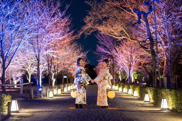 卒業旅行、桜の京都観光に。夜の二条城で桜のライトアップと着物レンタルのセット販売を開始。