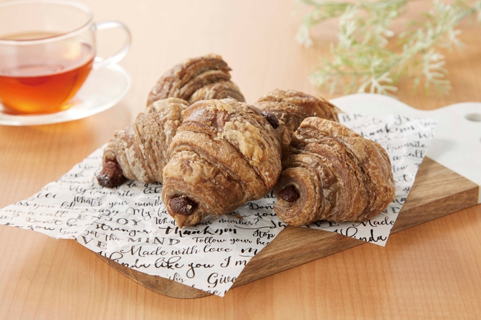 より本格的なクロワッサンを目指し、パン生地には「フランスパン専用小麦」を使用。小麦本来の風味やコクのある旨味を引き出す発酵種である「ルヴァン種」を配合することで、クロワッサンのおいしさのポイントである“外はサクサク、中はしっとり食感”に仕上げています。
