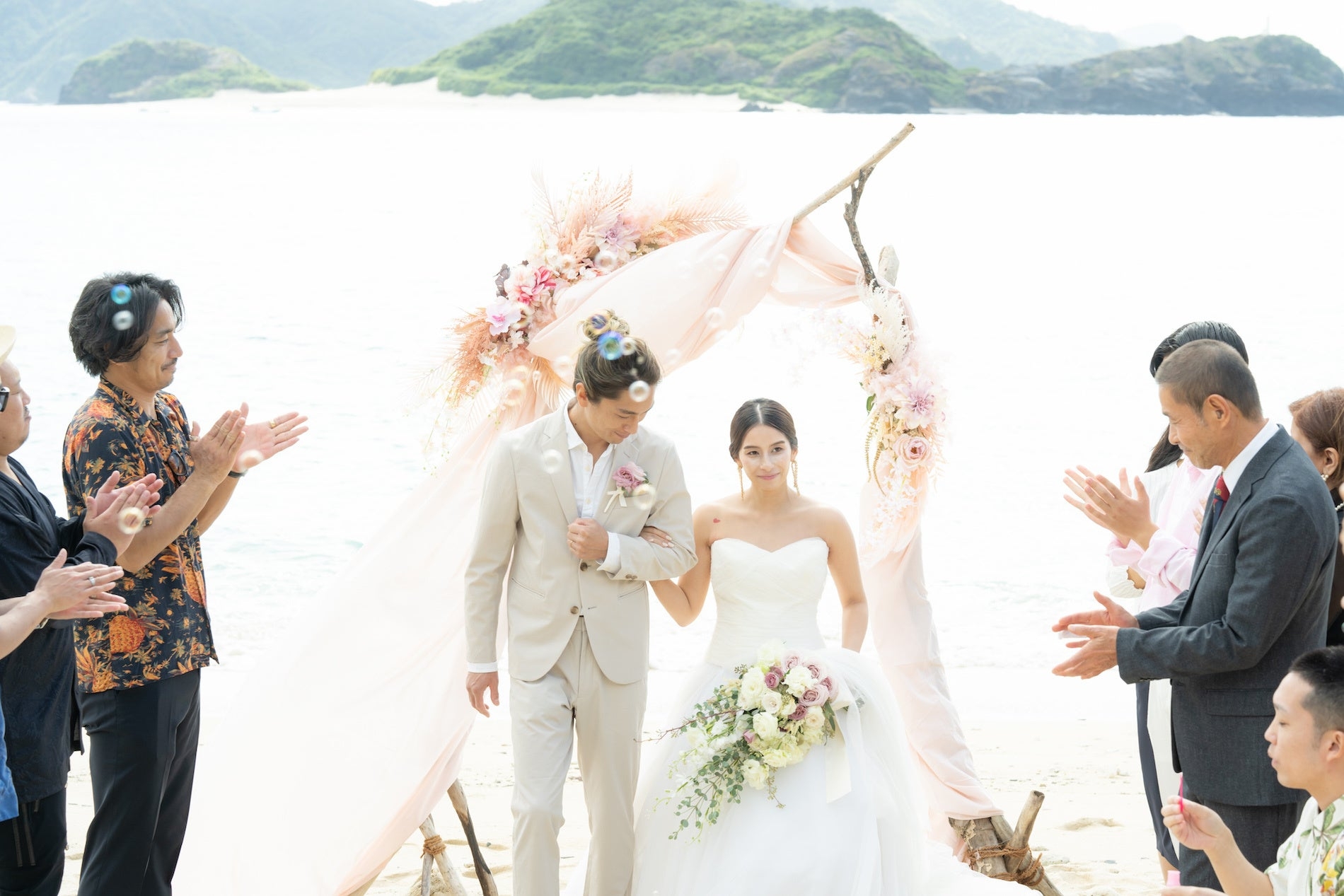 14年前に座間味に移住して直ぐ、一緒に移住を決めてくれた奥さんと、古座間味ビーチで手作りのウェディングパーティーを開いた経験があります。その頃から、いつかこの島でウェディング事業ができたらいいな、と思い描いていました。2019年に「KĀNUSUBA ZAMAMI」をオープンした時もホテルウェディングを事業計画に盛り込んでいました。ありがたいことに、この度「VIRIDI,」とご縁をいただき、念願だった滞在型ウェディングのスタート地点に立つことができました。