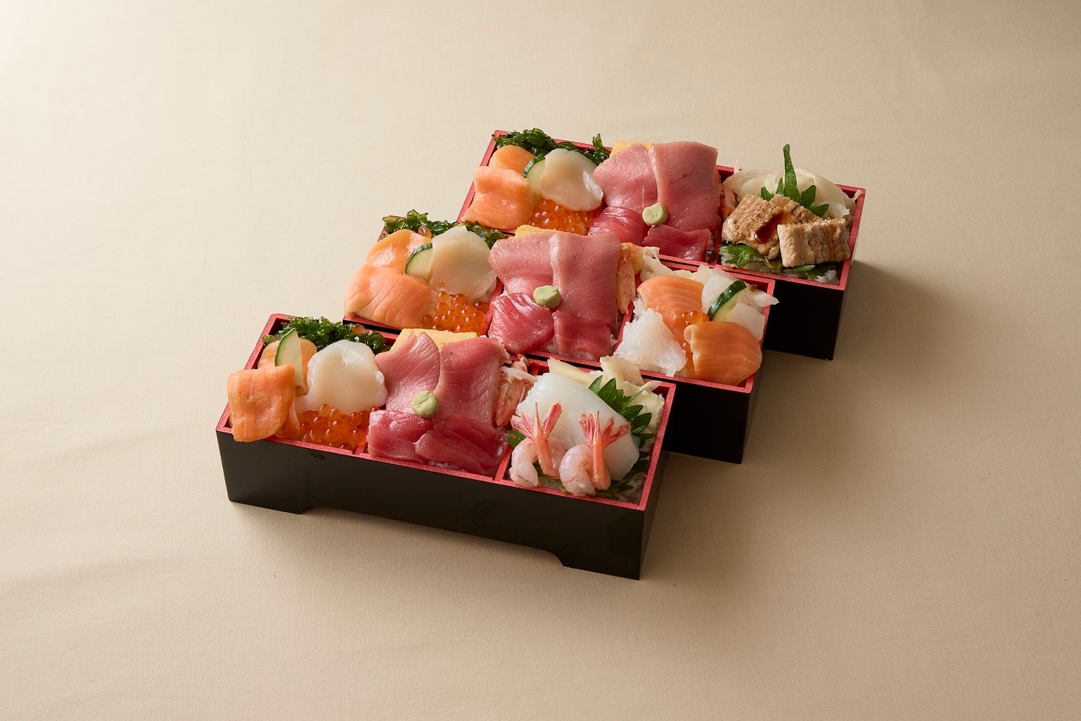 ボタンエビ3尾をはじめ、赤シマエビ、甘エビといった北海道産3種のエビを食べ尽くしできる豪快なお弁当。