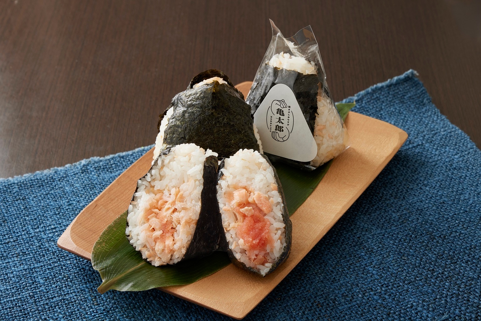 旬の噴火湾産のたらこと秋さけをミックスした具材を中に詰め、鮭をまぶしたごはんで握ったこだわりのおむすび。