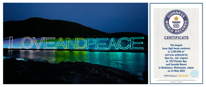 株式会社オージャス(本社:和歌山県、代表取締役:金田 紀彦)は、2025年7月1日(火)から8月31日(日)の期間にご宿泊のお客様を対象に、宿泊施設として日本で唯一、ギネス世界記録に認定されたレーザーメッセージ投影サービスを無料で提供するキャンペーンを実施します。これは、宿泊業界における新たな感動体験を創出し、お客様の忘れられない思い出づくりをサポートし、新たなチャレンジをするものです。