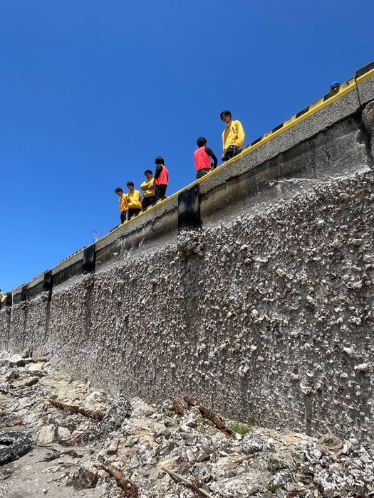 志賀町組は25日の休憩時間に地元ボランティアの案内で輪島市の鹿磯漁港へ。地盤が4メートルも隆起して漁船が入港できない状況が続いており、「報道などで見てはいましたが、現地の状況を目の当たりにして驚きました」「こんなことが起こるなんて信じられない」と言葉を失う学生もいました。