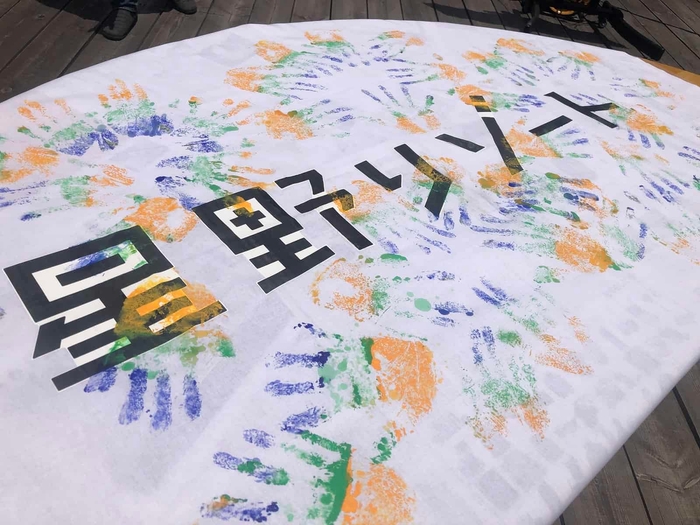 入社式では「契りの会」を実施しました。法律上の契約を時には超えて、共に人生の時間を過ごしていくことへのコミットメントを示す、手のひらでの契りを行いました。今回の「契りの会」はGoogle Meetにて全施設にて配信。全参加者が6つのチームに分かれ、手形を押し、チームで考えた川柳を読み上げました。各施設のスタッフが温かく見守る中、「契りの会」を進めました。