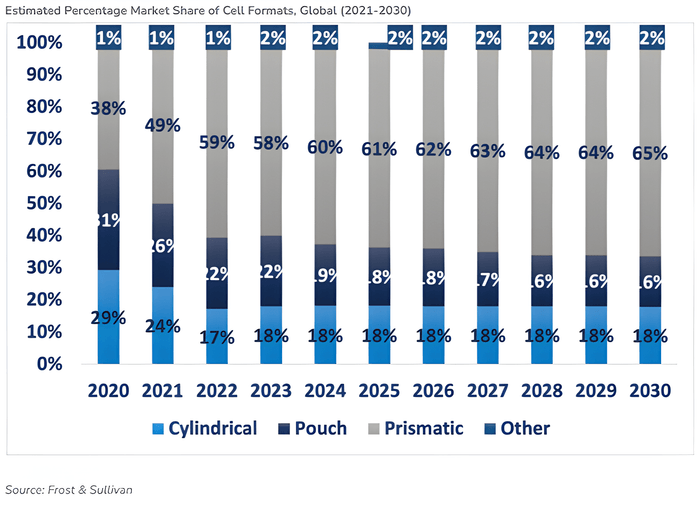 バッテリーは、多形式、多化学製造戦略と技術に依存しない施設がますます重要になるにつれ、角柱型、円筒型、ポーチ型のセルが優位を競い合っています。