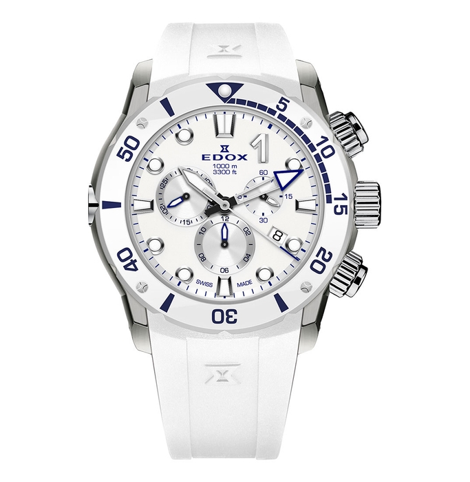最高速度が200km/hを超え、海のF1とも称されるパワーボートレースのダイナミックかつラグジュアリーな世界観を投影した、エドックスのフラッグシップコレクションです。厚さ3.5mm以上の重厚なセラミックベゼルや300~1000m防水を標準スペックとして備え、素材や仕上げへの一切の妥協を許さず審美性を追求することで、タフネスとエレガンスを両立しています。