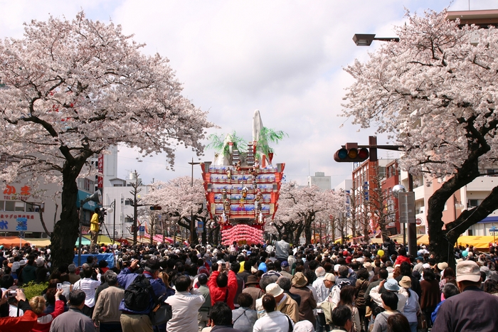 江戸時代中期享保の頃に始まった伝統芸能で、高さ15mの巨大な5層の山車の上で、からくり人形芝居が演じられます。