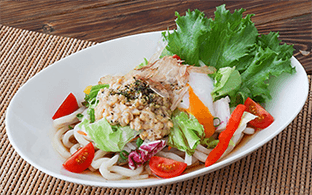 アレンジメニュー:のり塩だし納豆サラダうどん