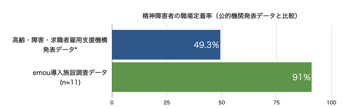精神障害を持つ方の就労移行支援を行う「株式会社AAAsupport(emou導入施設)」に調査を協力いただいた結果、「emou」が利用者の復職率の向上と職場定着に高い効果を発揮していることが分かりました。