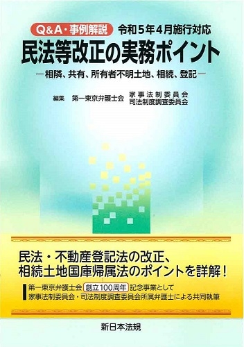 新日本法規出版株式会社(所在地:愛知県名古屋市中区栄1丁目23番20号、代表取締役:星謙一郎 (https://www.sn-hoki.co.jp/)は、2022年11月に発行した「Q&A・事例解説 令和5年4月施行対応 民法等改正の実務ポイント-相隣、共有、所有者不明土地、相続、登記-」を増刷し、2023年11月22日(水)に入荷いたしました。