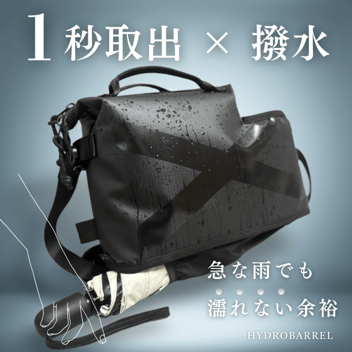 HydroBarrelは、子育て世代や外出が多い方に向けて、「必要なものをサッと取り出し、すぐにしまえる」ことを追求したショルダーバッグです。