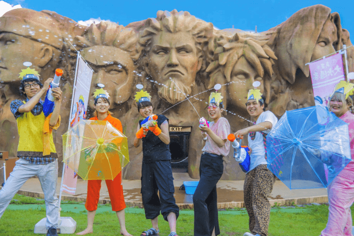 本イベントでは、忍里内、火影岩の前にある広場にて、ウォーターガン(水鉄砲)を使ったサバイバルゲームに挑戦することができます。参加者はウォーターガンを武器に、相手の額につけられた“ポイ”を目指して水を打ち出します。先に相手の“ポイ”を濡らしたチームの勝利となります。そして、勝者には特製のステッカーがプレゼント!1チーム最大4人で戦え、友達同士、家族同士で盛り上がること間違いなし!冷たいウォーターガンを撃ちまわし、暑い夏を吹き飛ばそう!