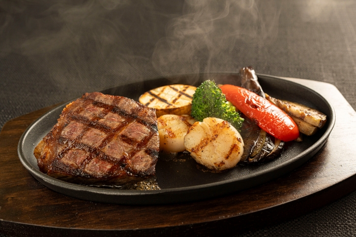 「オーシャンテラス」では、お客様よりご好評をいただいている常時約30種類の料理を揃えたビュッフェに加えて注文いただける、熱々の鉄板で焼いた淡路牛リブロースと帆立の貝柱を、今冬に限り、お召し上がりいただけます。柔らかくジューシーな肉質と濃厚な旨味を持つ淡路牛と、大ぶりで甘みが際立つ北海道オホーツク海産の帆立の貝柱を香ばしく焼き上げたあつあつメニュー。一度に肉と海鮮をお愉しみいただける鉄板焼きをご賞味あれ!