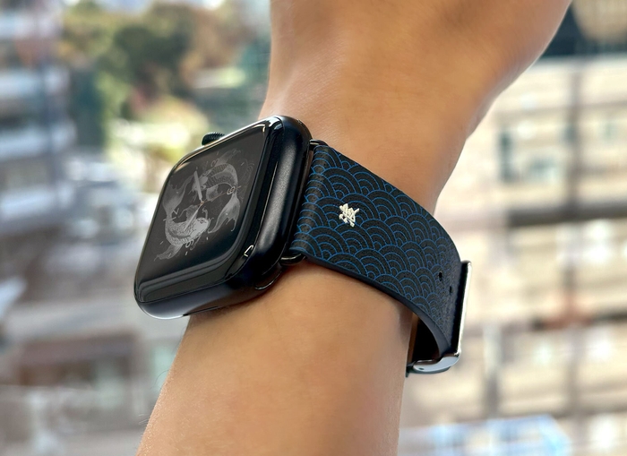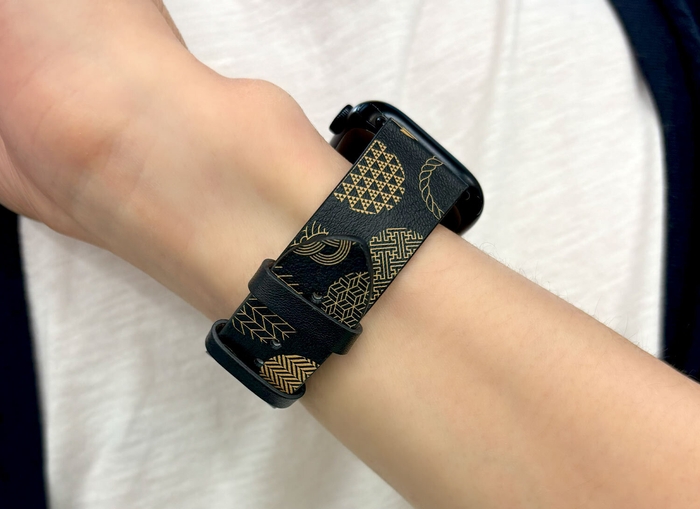 「KIMONO(キモノ)」では、肌触りの良い牛本革を採用し、裏面にもヌバック加工を施した牛本革を使用。ウレタンやラバーとは異なり、快適さと長時間の装着にも対応できる柔らかな使用感を提供します。また、UV印刷技術により図案の鮮やかな色彩と細部の精密さを再現しました。折り曲げにも強く耐久性も抜群です。