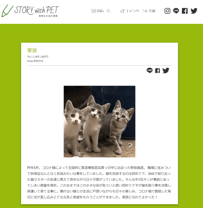 ペットとの絆を語ろう。1投稿500円が寄付になり保護犬猫が救われます