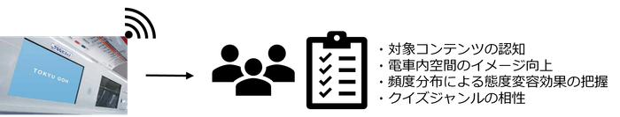 本コンテンツにおいては、NewtonHub(朝日デジタルラボ)のWebサイトとの連携により電車内における広告接触からWebサイト閲覧、キャンペーン応募という一連の流れを計測し、コンテンツによる態度変容・行動喚起の効果を検証します。