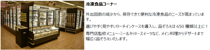売り場を拡大し、650種類以上の冷凍食品を品ぞろえ!