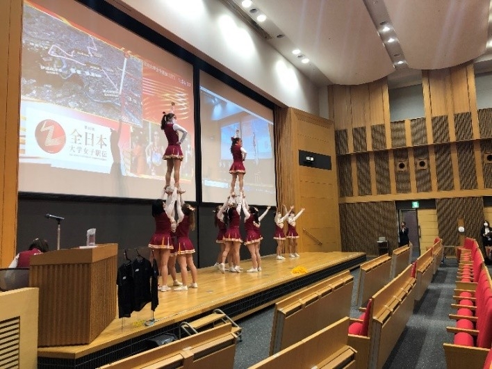 内容 : 應援團の吹奏楽部やチアリーディング部による応援