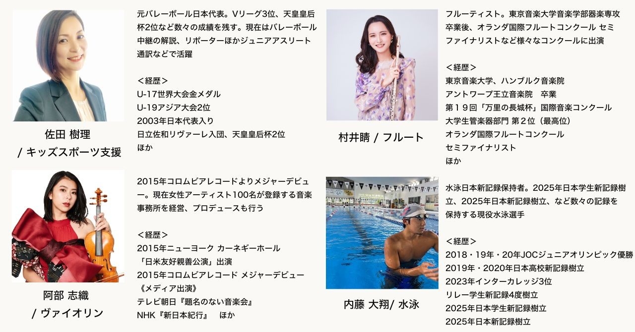 このような背景から、「manatea(マナティー)」では、元オリンピック選手やプロアスリートなど、数々の実績を持つコーチを増やし、学びの機会を強化いたしました。