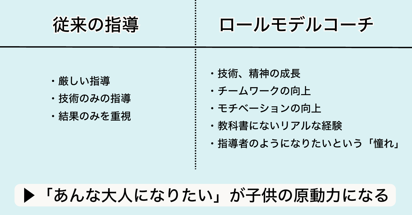 成長段階にある子供たちにとって、“模範となる存在(ロールモデル)”でありながら、同時に“指導者(コーチ)”である人に学ぶことは、毎日の生活はもちろん、将来に大きなプラスになることは疑いようもありません。