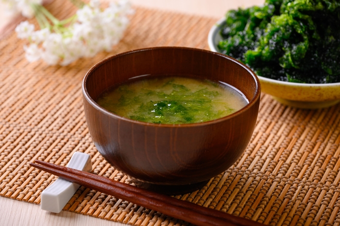 岩手県産のナンブシロメダイズで仕込んだ味噌汁に、歯ごたえ抜群の三陸わかめをたっぷり使用しました。