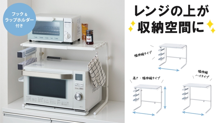 電子レンジの上を便利な収納空間に変える『レンジ上ラック伸縮タイプ シリーズ』を新発売!
