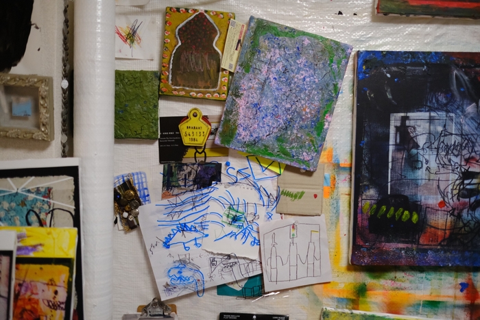 しかし一歩部屋に足を踏み入れると、生活感なんてまるでなかった。それはそうだ、何せアトリエだしね。2DKの2室共にキャンバスが並び、無造作(のように見える)に置かれた画材と作品と大きなスピーカー。