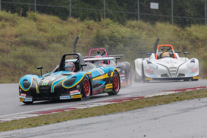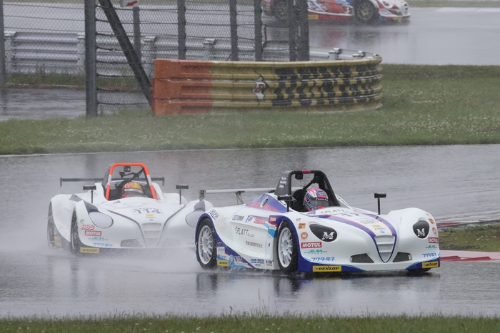 12時15分から12周で争われた決勝は、予選とは打って変わり雨模様となった。スタートでは2番グリッドの翁長が好ダッシュをみせ、トップに浮上。そのまま後続を引き離したいところだったが、10番手からスタートした三浦が1周目で6台を抜き、2周目のTGRコーナーでもさらに2台をパスして2番手に浮上。翁長の背後につけた。その後、アクシデント発生と雨が強くなったことを受けてセーフティカーが導入されるが、8周目にレースが再開されると、チャンピオン経験者2人による激しいトップ争いが展開された。
