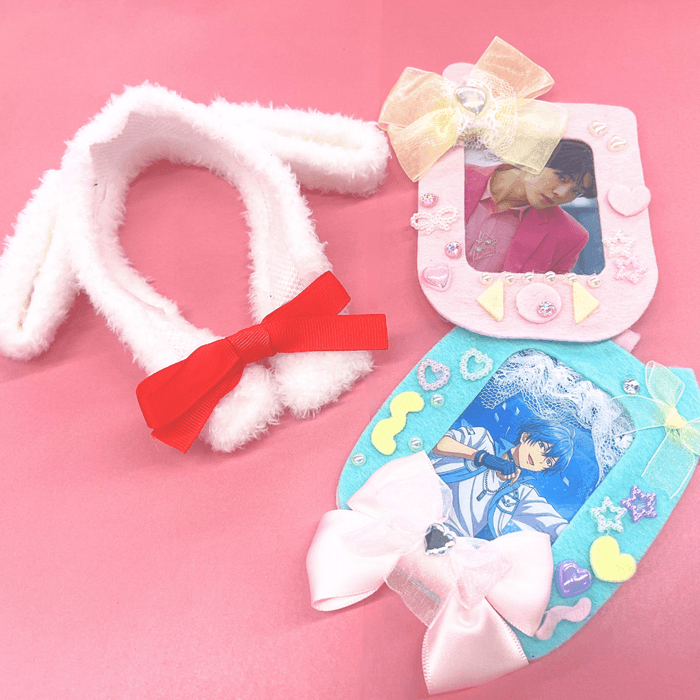 約20種類のリボンから好きなものを選んでぬいぐるみ用のうさみみヘッドドレスを手づくりできるワークショップです。ぬいぐるみだけでなく、ペンライトカバーとしても使用可能です!
