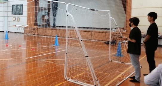 参加者は、ドローンのコントローラーの基本的な操作を教わってから実際にドローンを操縦しました。特に子どもは操作を覚えるのが非常に早く、大人に教えている子もいました。最後は、机やコーンなどを障害物に見立てた「ドローン障害物レース」で対決を行いました。次々と障害物を飛び越えるドローンに歓声が上がったり、思うような方向に行かずに悔しそうな顔をしたり、大盛況となりました。