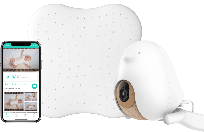 かわいい小鳥型の本体にAI人工知能技術を詰め込んだ高機能スマートベビーモニター!15万人のママパパに支持される子育ての頼れるパートナーです。
