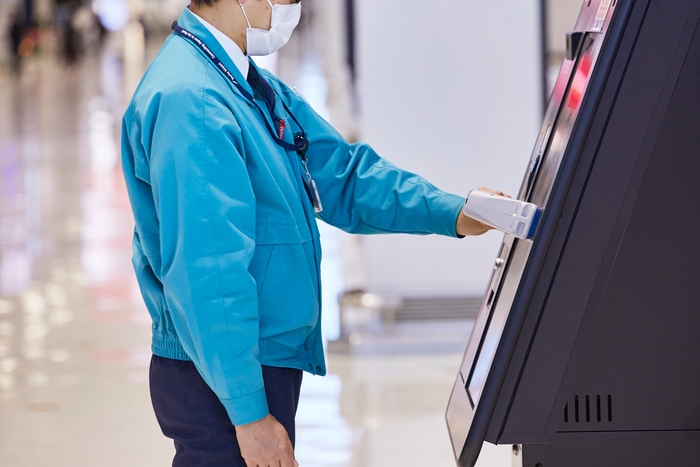 成田国際空港様は、感染症の感染拡大防止のため様々な取り組みを行っておりますが、その中で、フライト情報や館内施設情報などを提供するデジタルサイネージ「infotouch(インフォタッチ)」においても、お客様に安心してお使いいただけるようタッチパネルの定期的な清掃作業を実施しております。