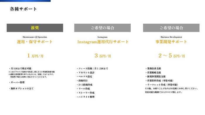 ○豊富な各種サポート - HP制作から営業戦略まで幅広くサポート