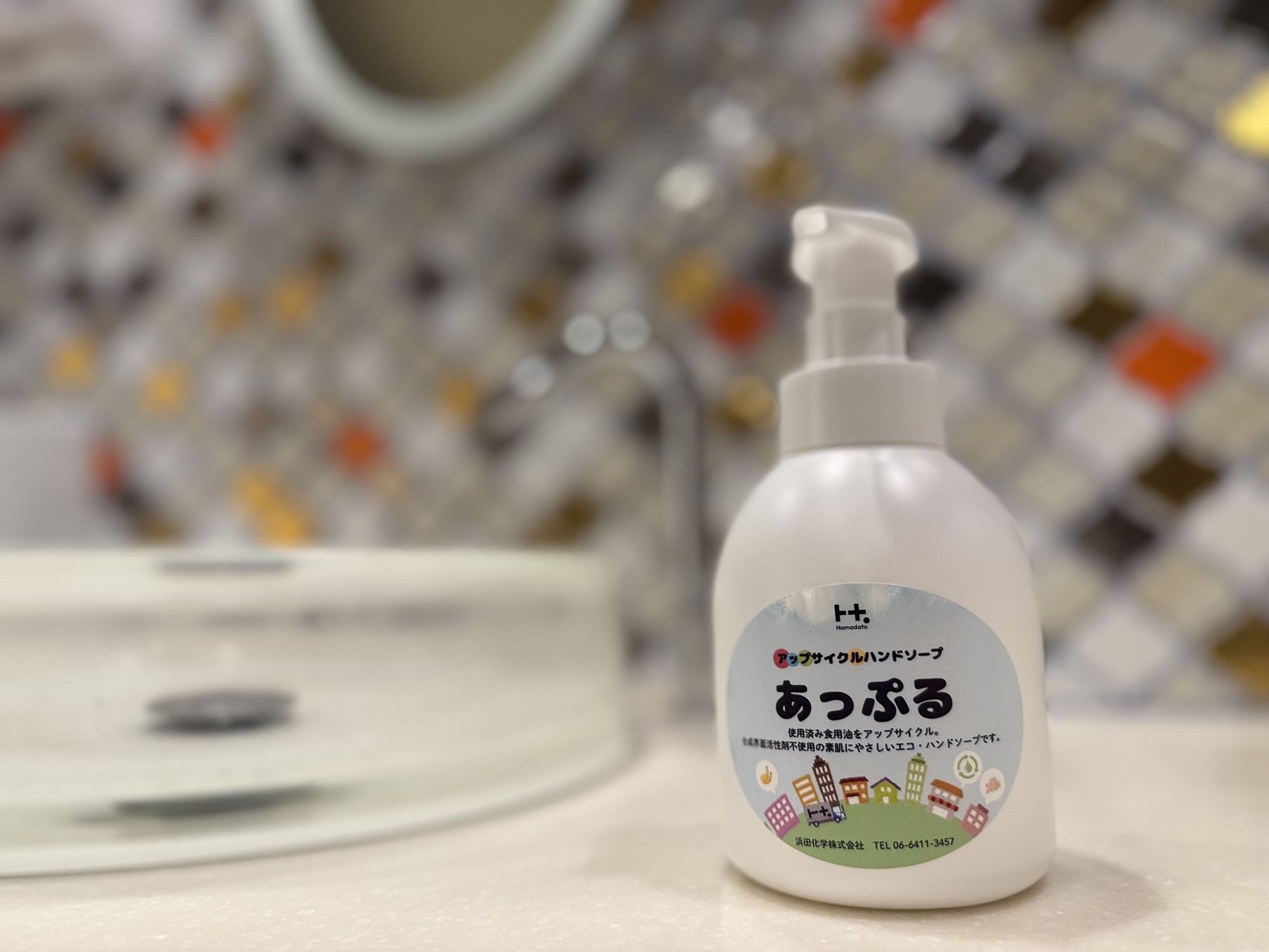 食用油をリサイクルした地球にやさしいハンドソープをホテルパブリックトイレに設置