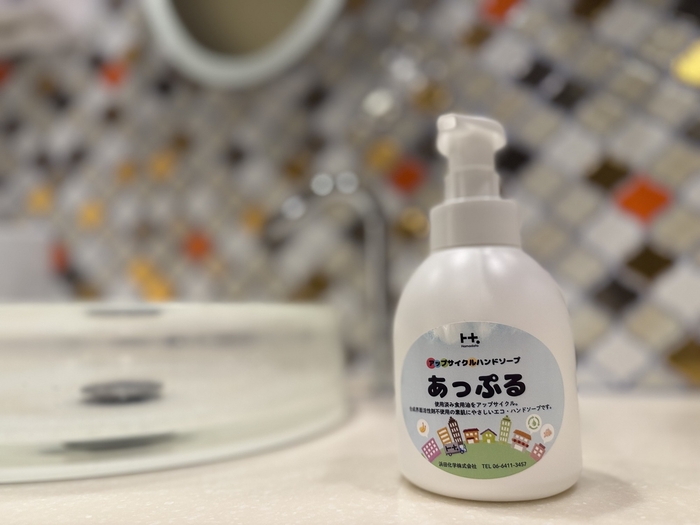 株式会社 ホテル京阪(本社:大阪市中央区 社長:西川 正浩)は、2025年7月より、全国14店舗のホテルにおいて、アップサイクルハンドソープ「あっぷる」のホテル内パブリックトイレへの導入を順次実施しております。