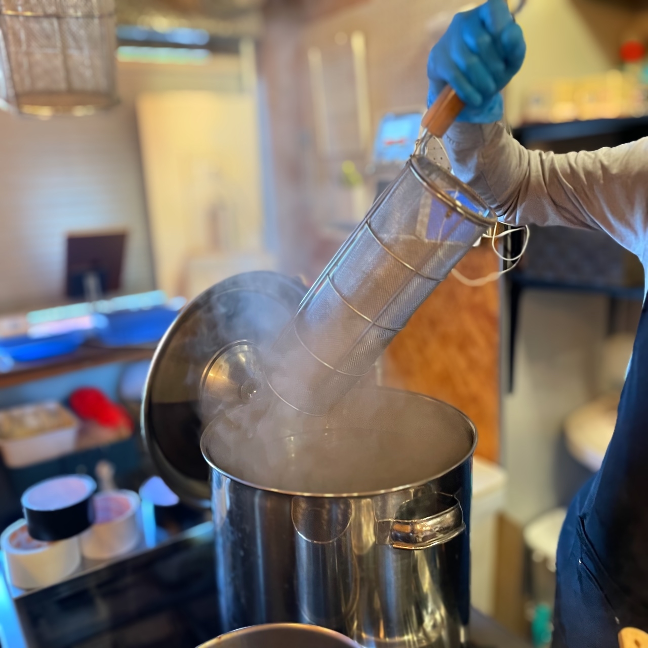 麺は太めの1.8mmの乾麺で、モチモチ感を重視。茹で置きは一切ないため、フレッシュな味わいが楽しめます。