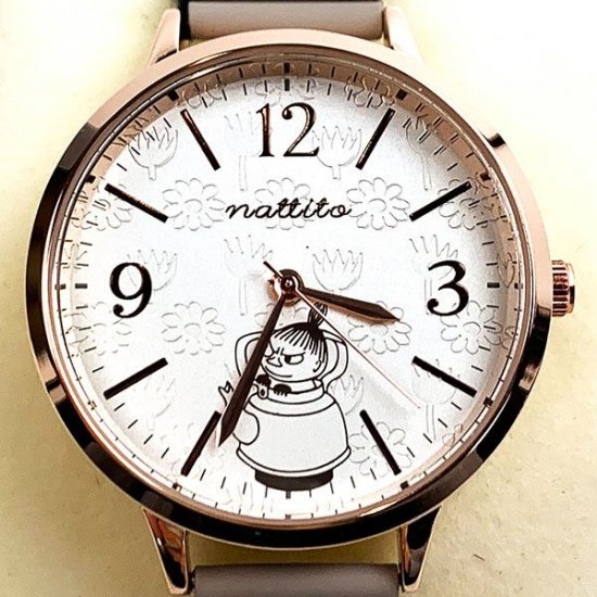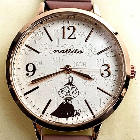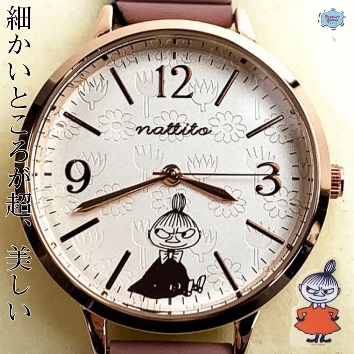 大きめのラウンド型の文字盤には、人気のリトルミィがデザインされています。さらに、周りにはお花が刻まれていて、とってもオシャレでガーリーな雰囲気。